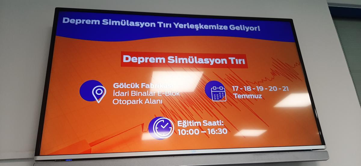 Boğaziçi Üniversitesi Kandilli Rasathanesi ve Deprem Araştırma Enstitüsü'nün Gezici Deprem Simülasyon Eğitim Tırında Ford Otosan Gölcük Fabrikası çalışanlarına ülkemizin bir deprem ülkesi olduğu hatırlatılarak, deprem tehlikesinin oluşturacağı riskleri en aza indirmek için deprem öncesi alınması gereken önlemler, deprem sırasında doğru davranış şekli ve deprem sonrasında yapılması gerekenler hakkında bilgiler verildikten sonra 20 saniye süren Deprem Simülasyonu uygulandı.
