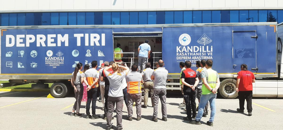 Boğaziçi Üniversitesi Kandilli Rasathanesi ve Deprem Araştırma Enstitüsü'nün Gezici Deprem Simülasyon Eğitim Tırında Ford Otosan çalışanlarına ülkemizin bir deprem ülkesi olduğu hatırlatılarak, deprem tehlikesinin oluşturacağı riskleri en aza indirmek için deprem öncesi alınması gereken önlemler, deprem sırasında doğru davranış şekli ve deprem sonrasında yapılması gerekenler hakkında bilgiler verildikten sonra 20 saniye süren Deprem Simülasyonu uygulandı.