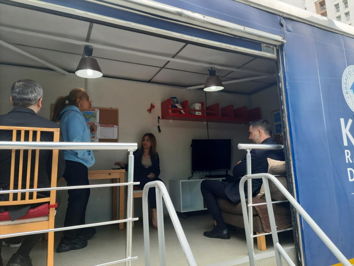Boğaziçi Üniversitesi Kandilli Rasathanesi ve Deprem Araştırma Enstitüsü'nün Gezici Deprem Simülasyon Eğitim Tırında ABD İstanbul Başkonsolosluğu çalışanlarına ülkemizin bir deprem ülkesi olduğu hatırlatılarak, deprem tehlikesinin oluşturacağı riskleri en aza indirmek için deprem öncesi alınması gereken önlemler, deprem sırasında doğru davranış şekli ve deprem sonrasında yapılması gerekenler hakkında bilgiler verildikten sonra 20 saniye süren Deprem Simülasyonu uygulandı. |