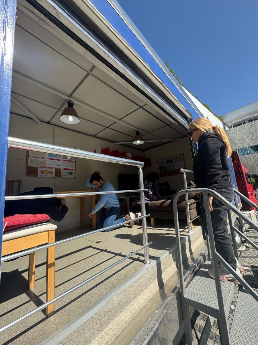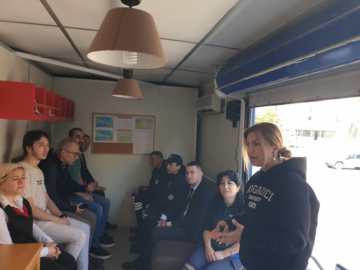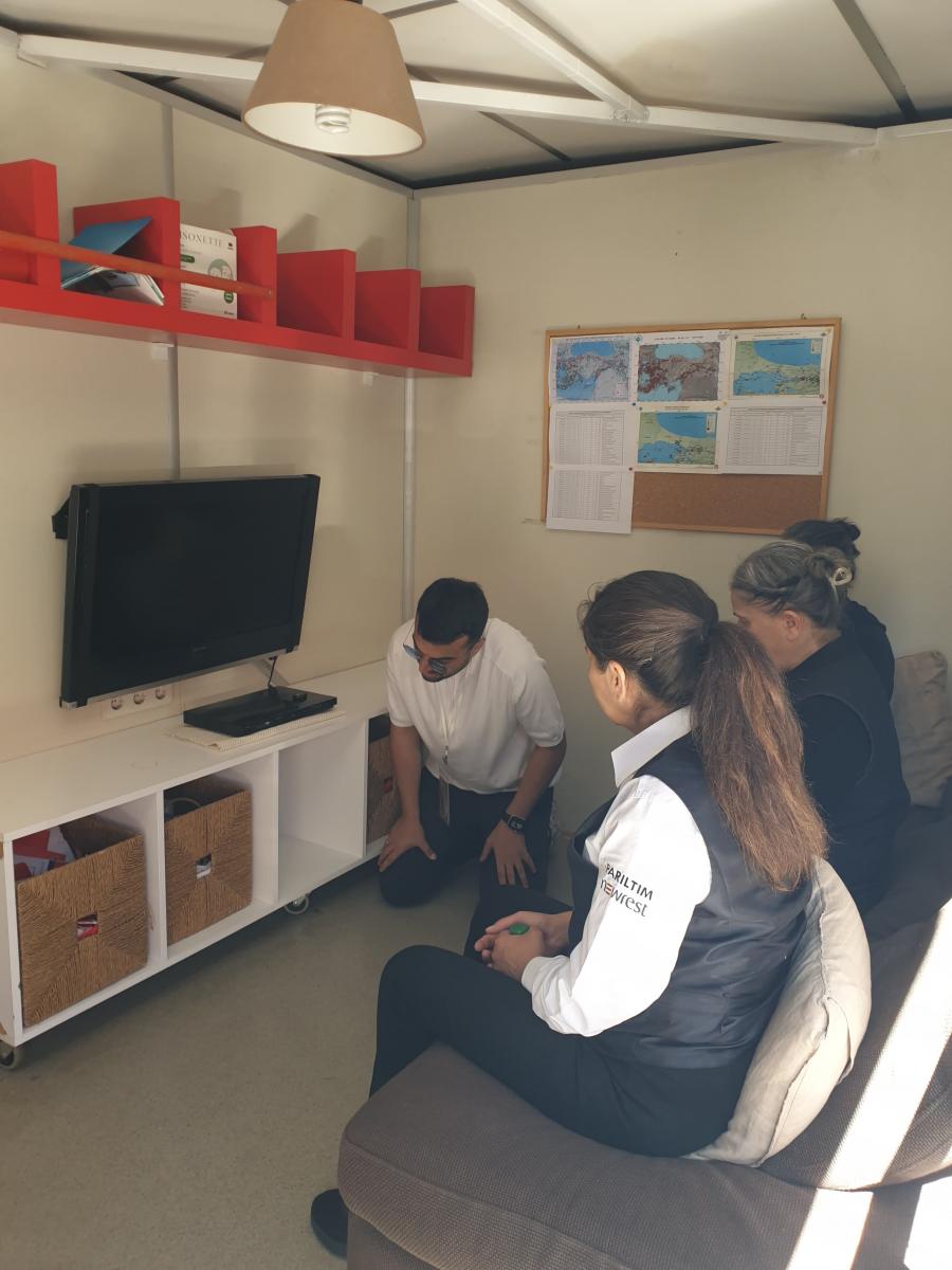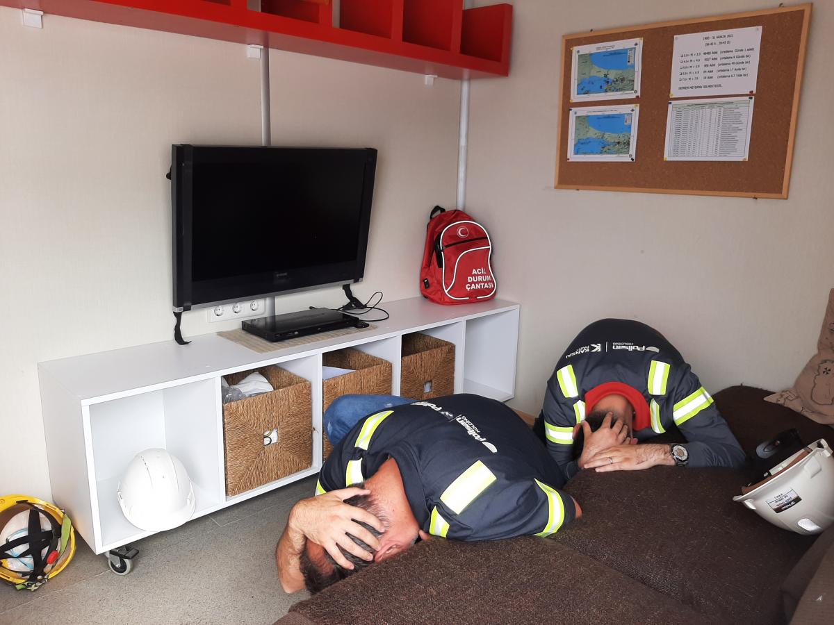 Boğaziçi Üniversitesi Kandilli Rasathanesi ve Deprem Araştırma Enstitüsü'nün Gezici Deprem Simülasyon Eğitim Tırında GIZ çalışanlarına ülkemizin bir deprem ülkesi olduğu hatırlatılarak, deprem tehlikesinin oluşturacağı riskleri en aza indirmek için deprem öncesi alınması gereken önlemler, deprem sırasında doğru davranış şekli ve deprem sonrasında yapılması gerekenler hakkında bilgiler verildikten sonra 20 saniye süren Deprem Simülasyonu uygulandı.