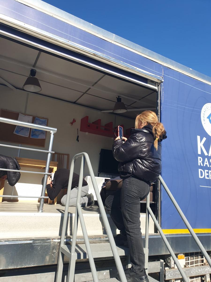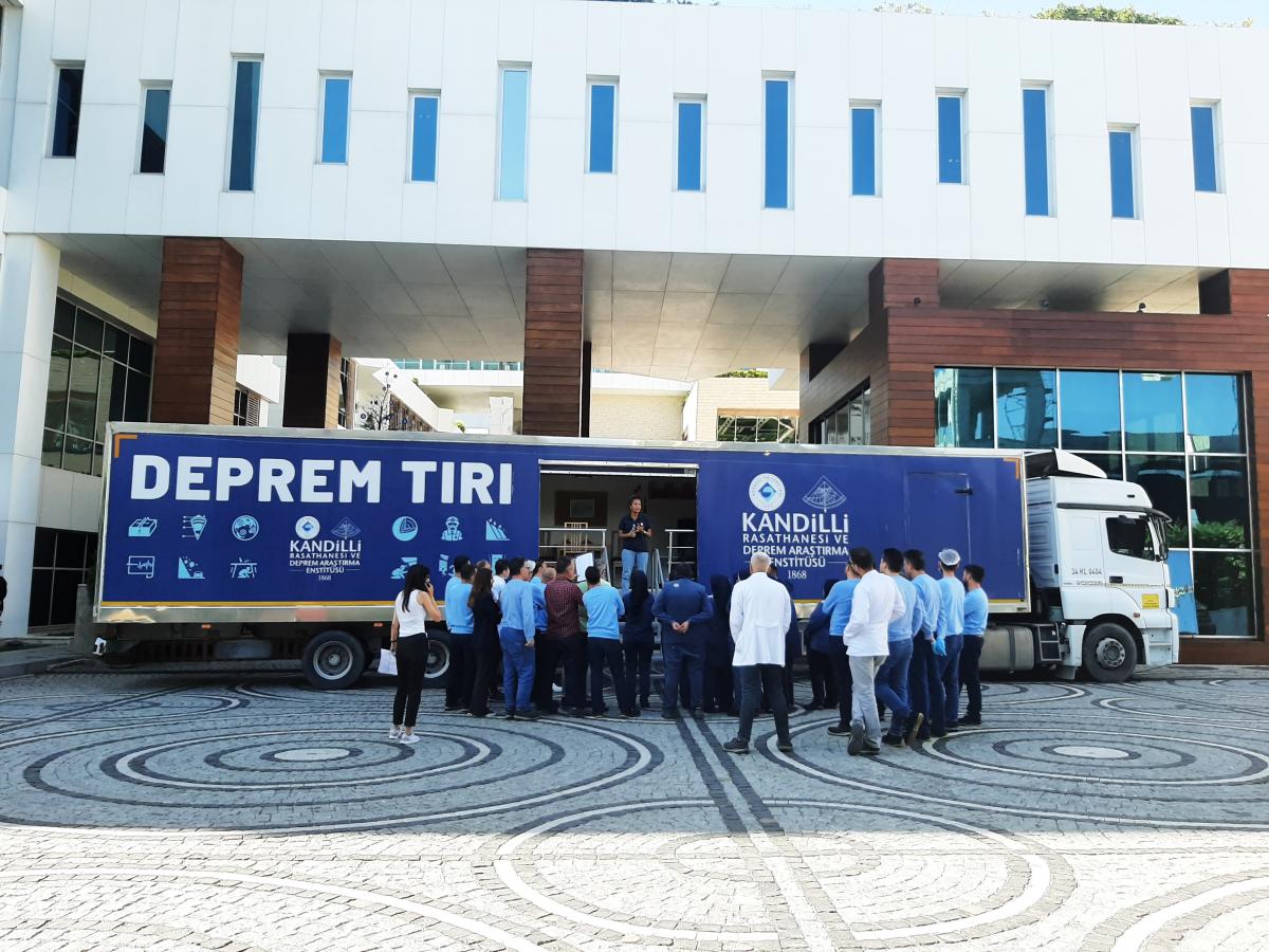 Deprem Tırını ziyaret eden katılımcılara Boğaziçi Üniversitesi Kandilli Rasathanesi ve Deprem Araştırma Enstitüsü AHLAB eğitmenleri tarafından ülkemizin bir deprem ülkesi olduğu hatırlatılarak, deprem tehlikesinin oluşturacağı riskleri en aza indirmek için deprem öncesi alınması gereken yapısal, yapısal olmayan önlemler, deprem sırasında doğru davranış şekli ve deprem sonrasında yapılması gerekenler hakkında bilgiler verildikten sonra 20 saniye süren Deprem simülasyonu uygulandı.